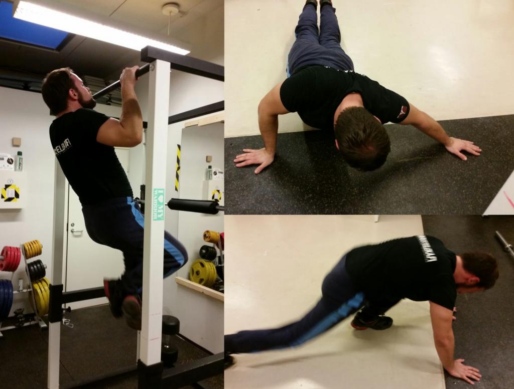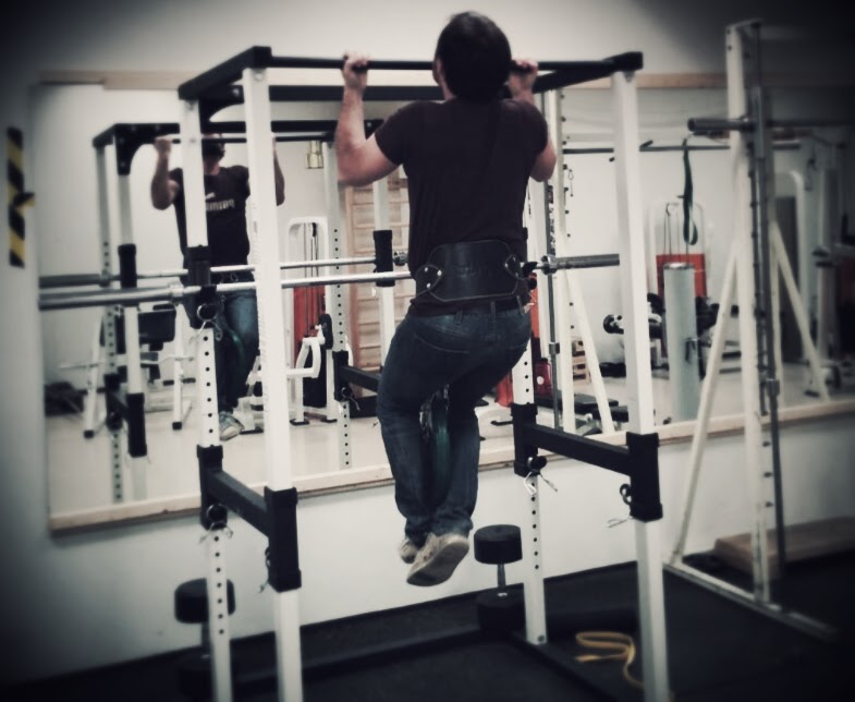 Saan 10 leukaa vedettyä 78 kg massallani. Tänään oli vuorossa 88 kg:n nosto, eli 10 kg levypaino vyöltä roikkumaan. 3x maksimit 2min tauoilla: